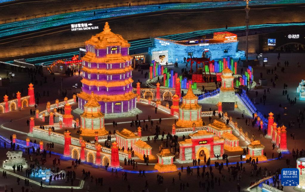 這是1月5日拍攝的哈爾濱冰雪大世界園區(qū)(無人機(jī)照片)。